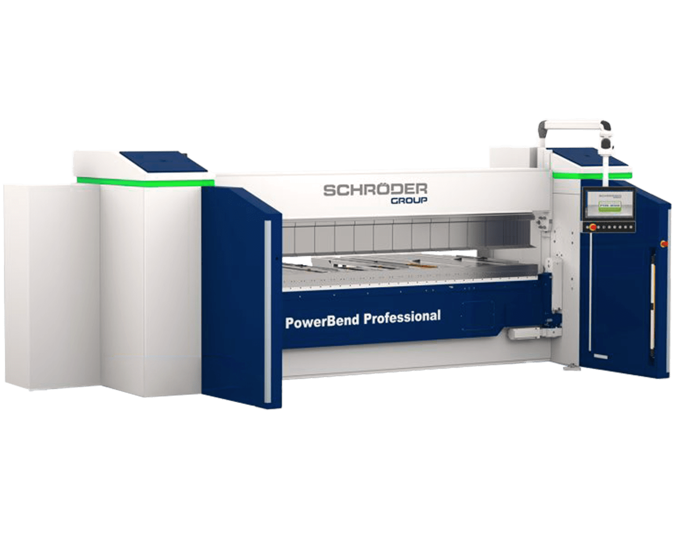 The Schröder PowerBend Professional is a next-generation CNC press brake, ideal for bending thin metal sheets with precision and reliability. Equipped with a POS 2000 control, CNC crowning, and segmented tools, it ensures high flexibility, even for complex geometries. Its hydraulic clamping and optional rotating beam reduce setup times and increase productivity.