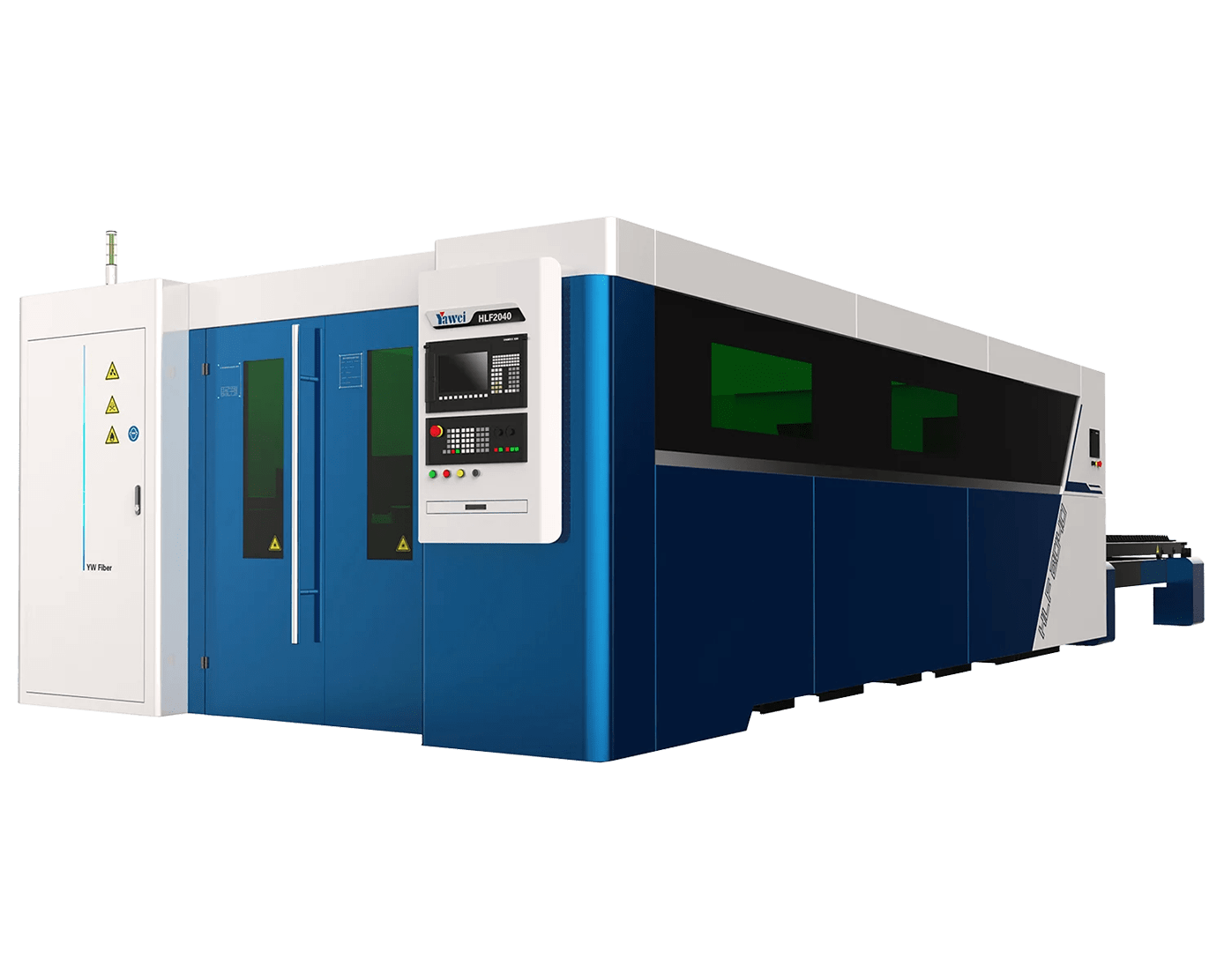 The Yawei HLF series is a high-speed fiber laser cutter that combines performance and efficiency. Its mono-block structure and aluminum gantry ensure stability, precision, and speed, in addition to requiring low energy consumption. Equipped with a synchronized dual drive and an automatically switching workbench, it will optimize your production capacity.