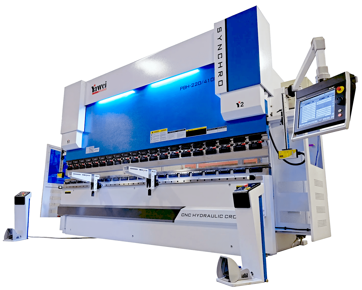 The Yawei PBH series is an ultra-robust CNC hydraulic press brake designed for heavy-duty and complex bending applications. With capacities ranging from 440 to 5,500 tons and bend lengths up to 60 feet, it offers increased performance, cutting-edge precision, and exceptional long-term reliability, without any need for major maintenance.